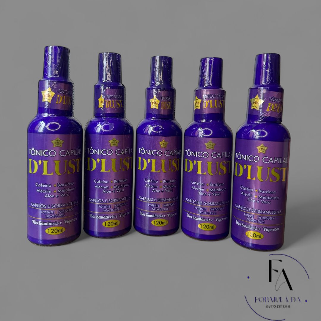 O Tônico Capilar D’lust é um tratamento desenvolvido especialmente para fortalecer os fios, estimular o crescimento saudável e combater a queda, proporcionando mais força, volume e vitalidade aos cabelos e até às sobrancelhas. Cada frasco contém 120ml.