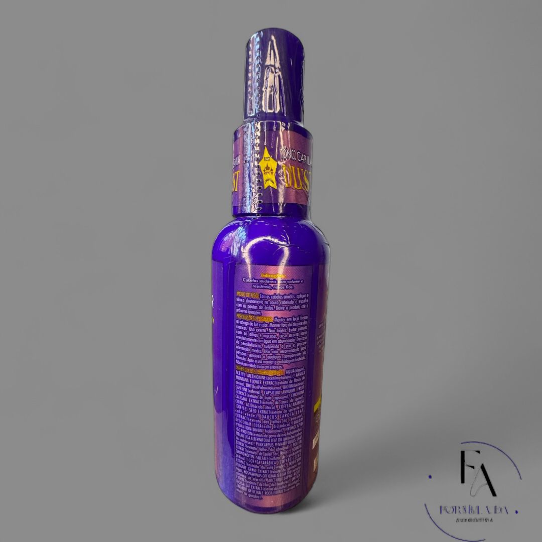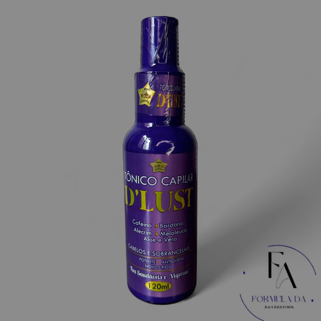 O Tônico Capilar D’lust é um tratamento desenvolvido especialmente para fortalecer os fios, estimular o crescimento saudável e combater a queda, proporcionando mais força, volume e vitalidade aos cabelos e até às sobrancelhas, o frasco contém 120ml.